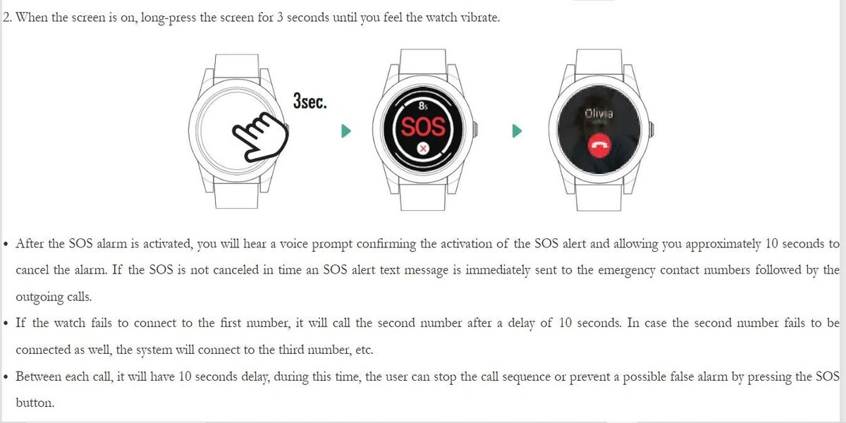 The Watch Medical Alert System can dial one or more custom phone numbers such as a neighbor, caregiver or family members. Up to 10 emergency contact numbers can be programmed into the device.