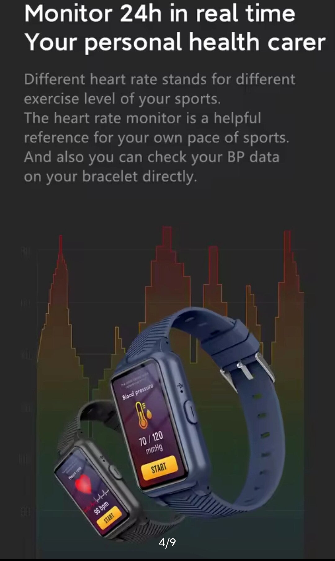 9. Heart Rate,Blood Oxygen,Blood Pressure,Body Temperature,Phone book ,historical Footprint Tracking ,Safety Zone .